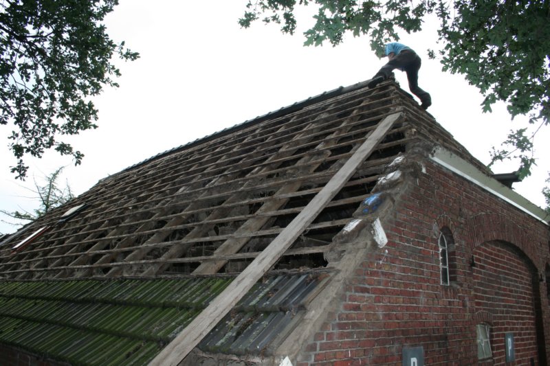 4 augustus; verwijderen dakpannen