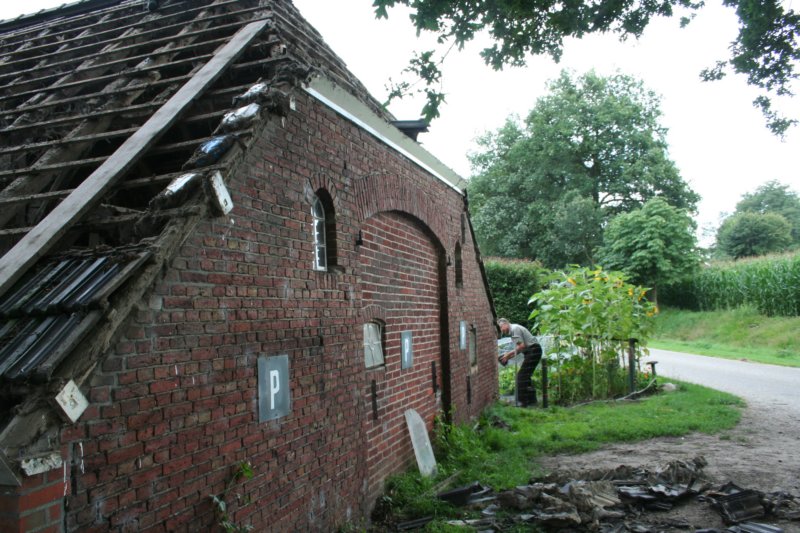 4 augustus; verwijderen dakpannen